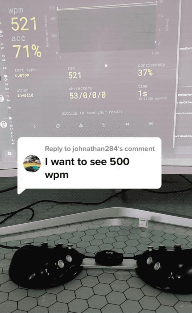 不信?我们从CharaChorder的CEO Keen发布的TikTok中看一下实战效果: