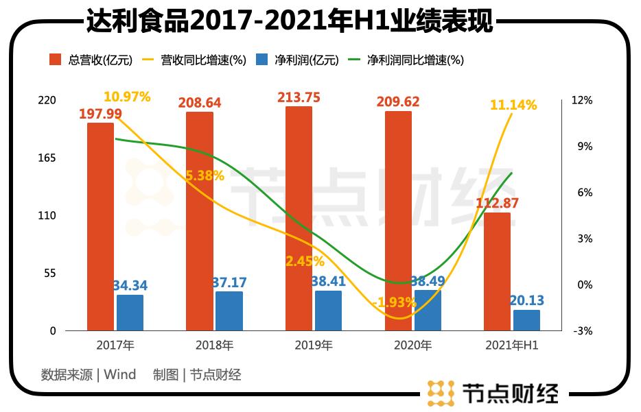 其实,2021年上半年达利食品的业绩表现还可以,扭转了2020年的负增长颓势。