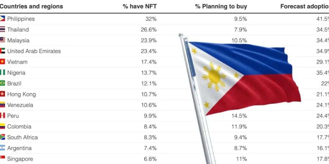 在这份调查报告中,还有另外9.5%的菲律宾受访人表示,计划在将来持有NFT资产,换言之,菲律宾的NFT持有率可能逐步超过41.5%,甚至更多。