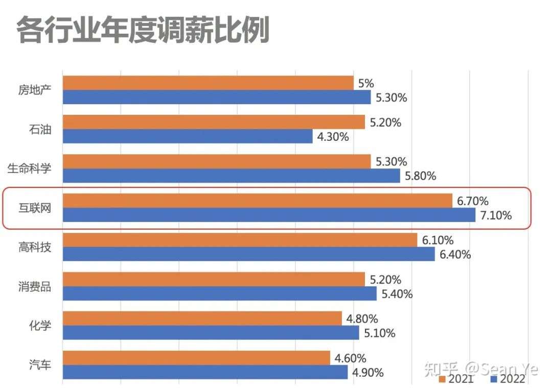 在美世最近一次调研里,2022年唯一一个被预测年度涨薪在7%以上的行业,就是互联网行业。