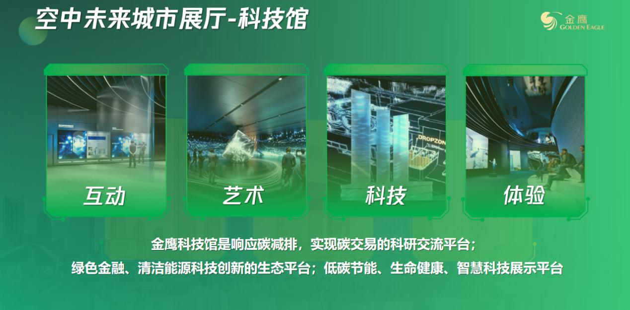 南京金鹰世界项目未来将集科技+、文化+、艺术+、生活+为一体,以尖端科技赋能,展现未来城市生活。空中未来城市展厅的55层,是一个集互动、艺术、科技、体验于一体的金鹰科技馆。在碳中和时代背景下,这里将展示在新形势下低碳节能、生命健康、智慧物业、新兴科技、元宇宙等方面的研究及践行成果,将企业、社会、城市与人联系起来,搭建一个绿色金融、清洁能源、科技创新的生态平台。届时,金鹰将以B座科技大楼为载体,孵化科技项目,投资有潜力的新兴企业。