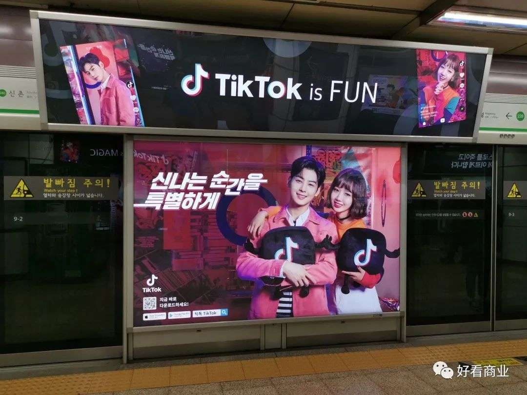 2019年3月,韩国首尔地铁站内抖音短视频国际版的宣传广告,图/视觉中国