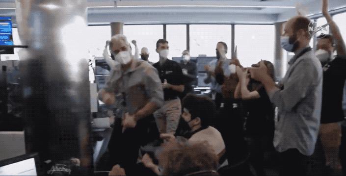 拼接成功的一瞬间,NASA科学家们也是欢呼雀跃: