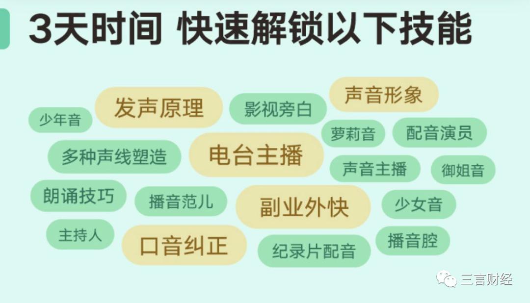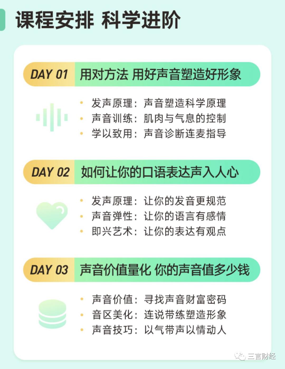 课程安排分3天,前两天是声音本身,最后一天是讲如何变现。