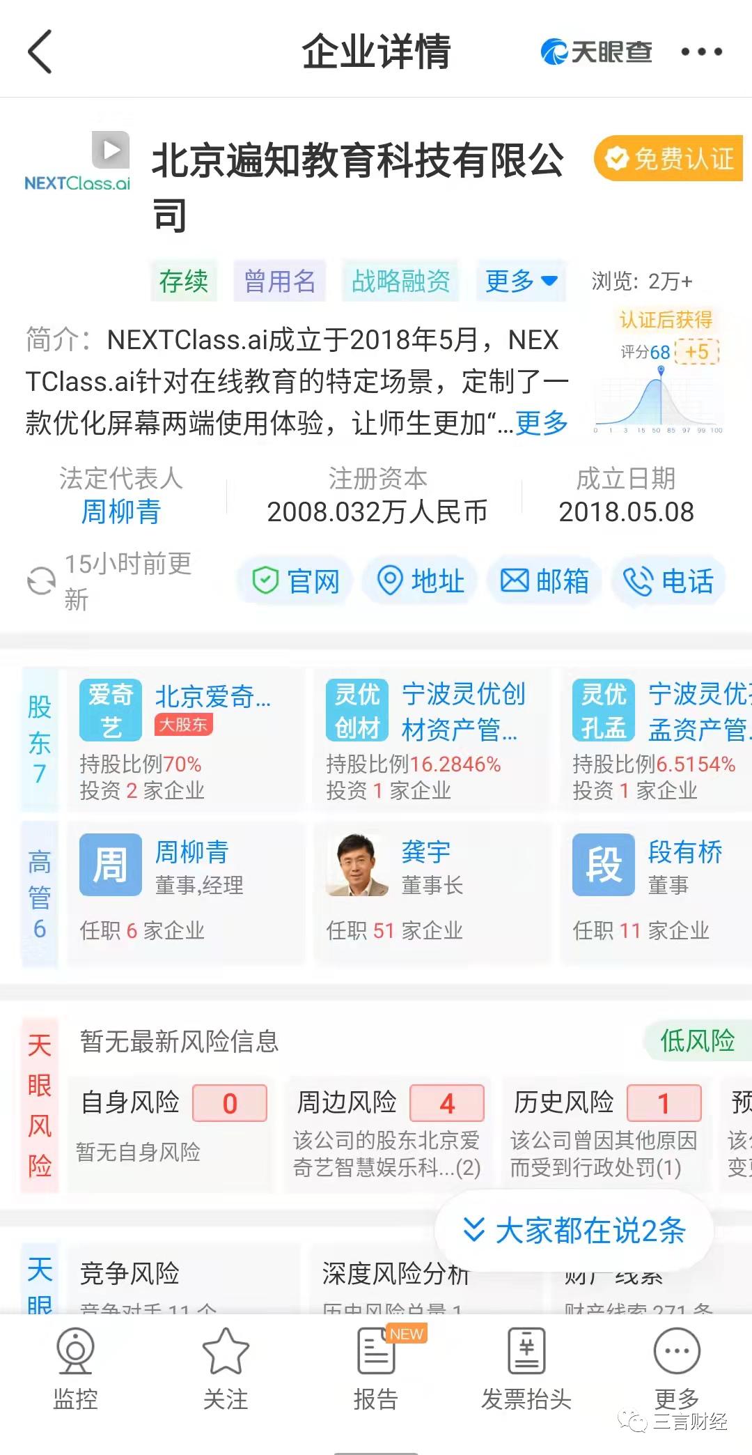 天眼查显示,遍知科技是爱奇艺旗下公司。