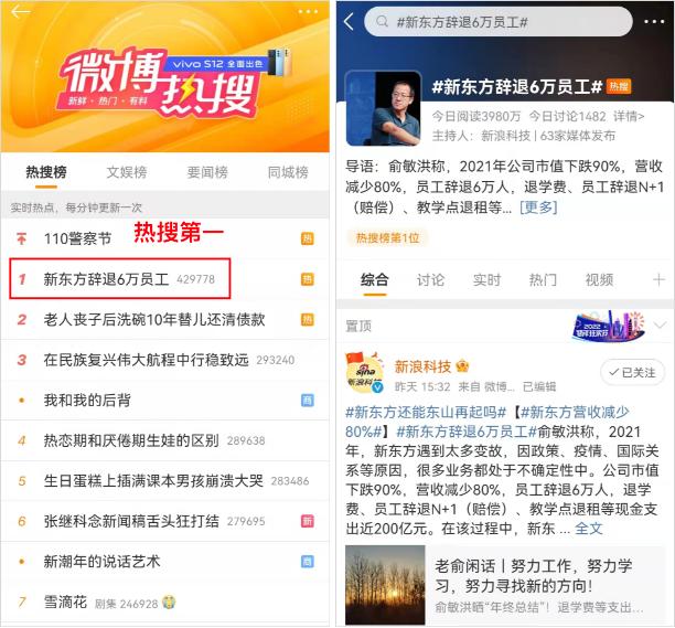2022 年刚开始没多久,#新东方辞退 6 万员工# 就冲上热搜了第一名。
