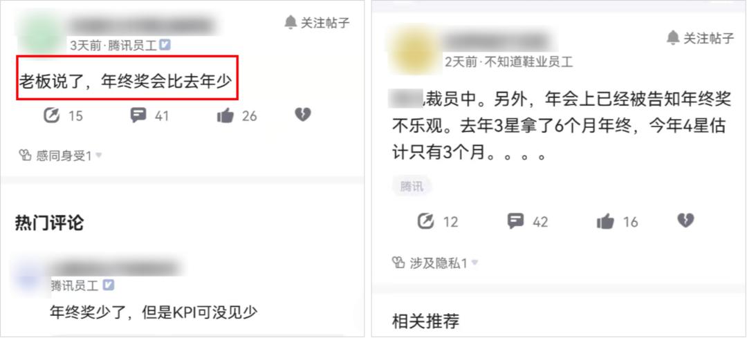 脉脉上很多用户也发帖证实了这一现状,某个已经开过年会的大厂被爆料,去年 3 星拿 6 个月年终奖,今年 4 星只有 3 个月年终奖……
