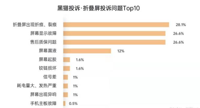 包括已经为折叠屏买单的用户,他们对产品的评价也不全然是正面的。例如在黑猫投诉平台,关于折叠屏的投诉中,屏幕折痕、显示故障、保修问题、铰链损坏等等都是折叠形态带来的“创新的代价”。