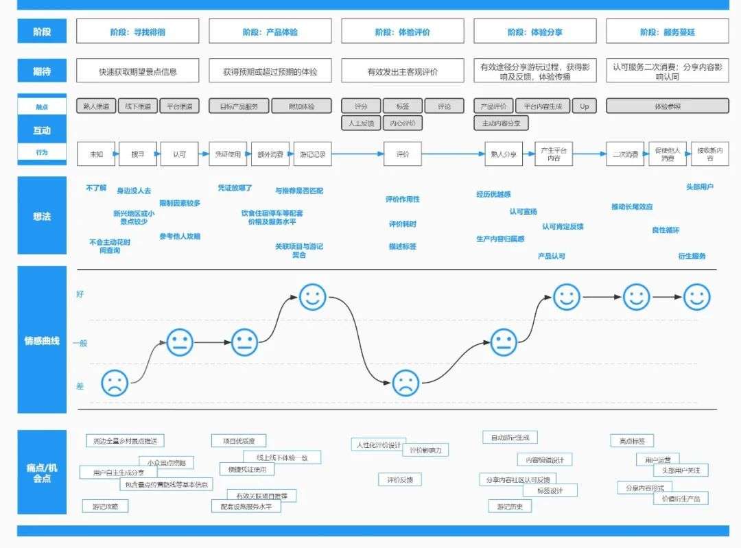 时间维度:分为寻找阶段、产品体验、体验评价、体验分享、服务蔓延五大阶段。