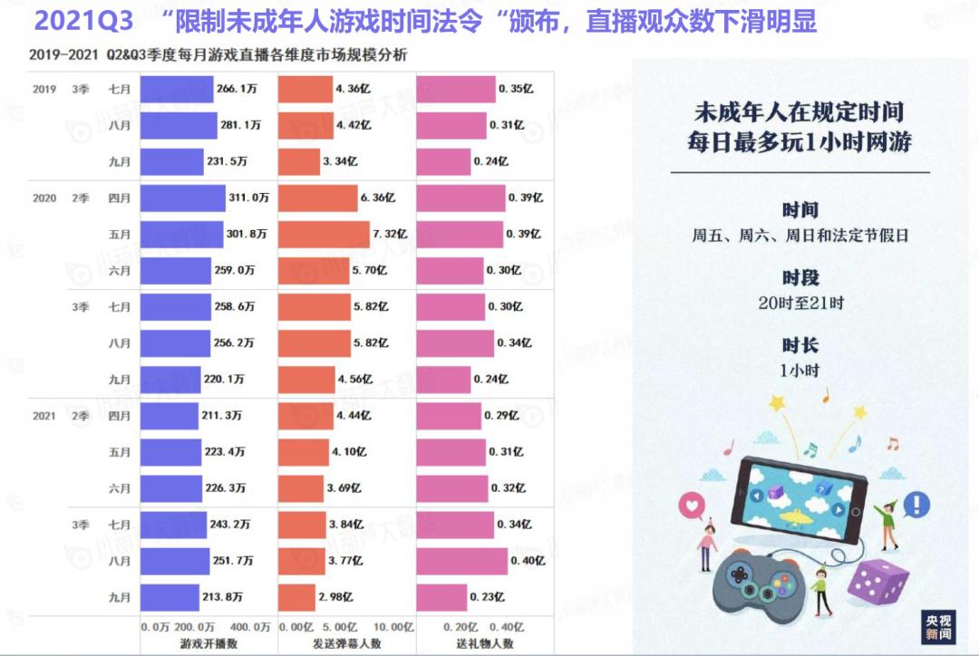 其四,2021Q3,“限制未成年人游戏时间法令“颁布,导致游戏直播用户明显下滑。