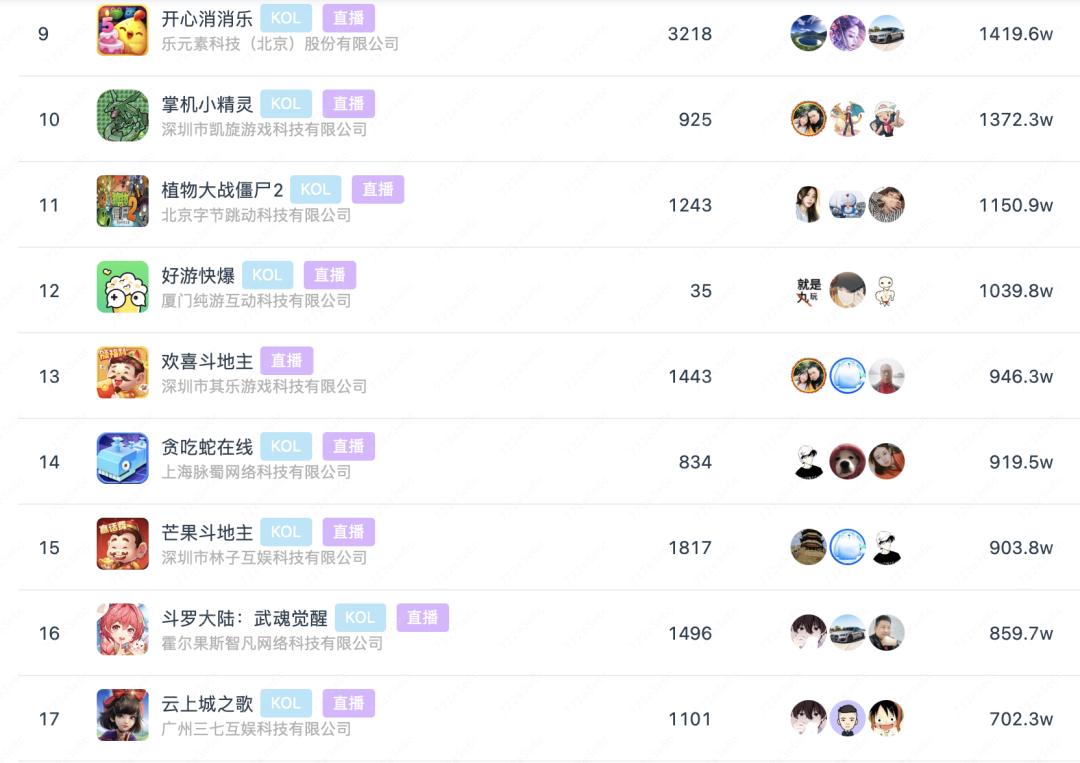 ②更适用于轻度品类:不论是cpd还是cps模式,目前短视频游戏直播中,棋牌类、休闲益智类游戏大行其道,这主要因为包体小、用户决策成本低。而中重度游戏效果仍需观察。
