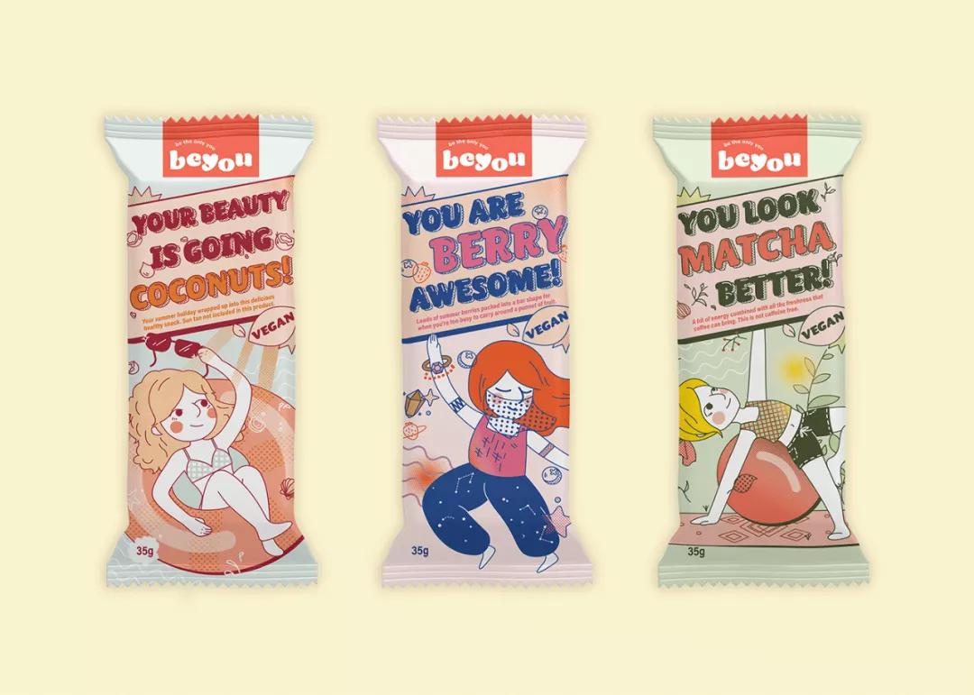 Beyou是一款来自澳大利亚的保健食品,该品牌受到市场一定程度的影响,希望通过包装视觉设计来吸引全新的市场,目标受众是千禧一代女性。该产品共有三种口味,有趣和互动式的排版设计加上专为活力女性而设计的插画是整个包装的核心视觉。