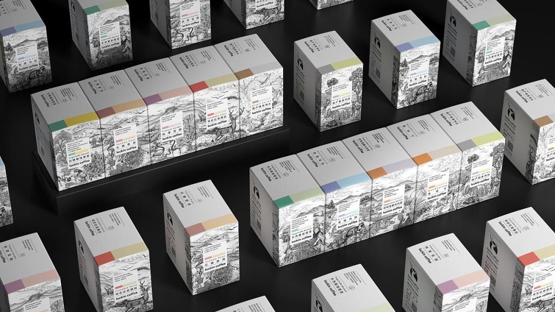 瑞幸的这款与潘虎包装设计实验室合作的精品挂耳咖啡,在色彩上采用莫兰迪色系,低调又不失高雅。集齐五盒不同口味,便可以拼出一幅完整画作:远处崇山峻岭,近处咖农正在采摘咖啡豆,有仙鹤和梅花鹿,也有烹煮倾倒咖啡的悠然,消费者可以身临其境感受咖啡星球咖啡原产地的故事。
