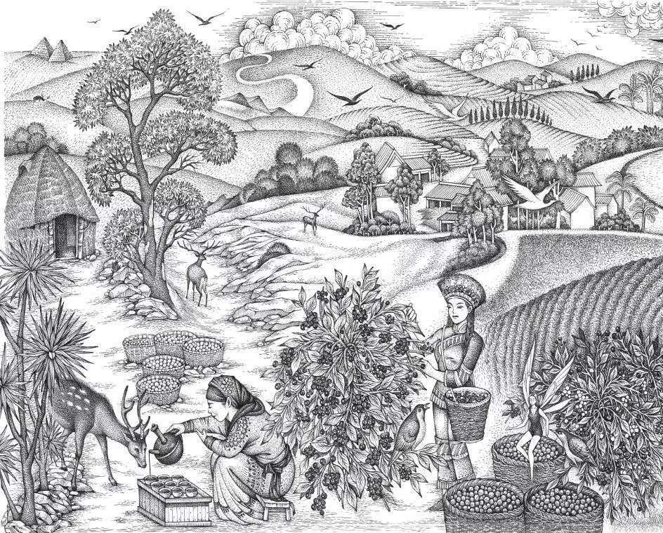 例如品牌云南系列的三款定制咖啡:带有花香和水果风味的云南22°50′,带有明亮酸感与坚果、巧克力风味的云南22°83′,以及采用甜酒处理法发酵出黄酒和热带水果风味的云南24°97′。
