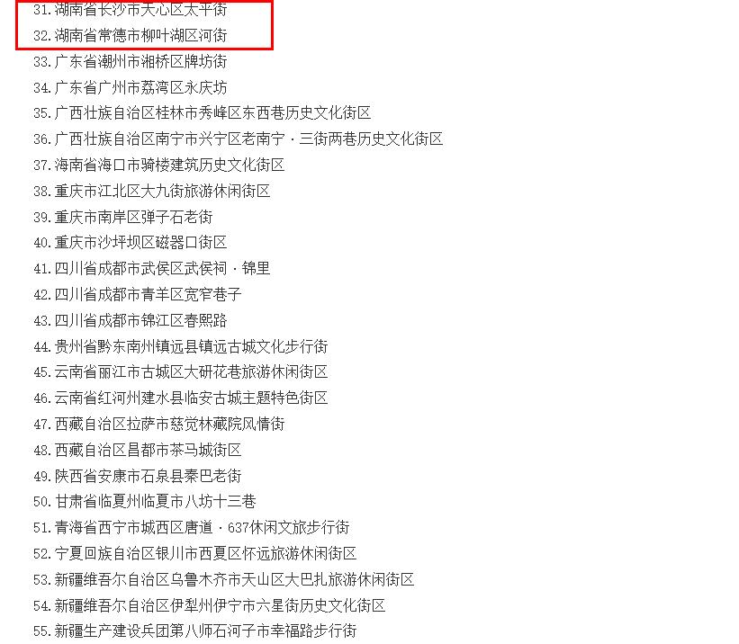 近日,文化和旅游部公布了首批国家级旅游休闲街区名单,全国共有55个街区入选。其中,湖南省有长沙市天心区太平街、常德市柳叶湖区河街位列榜单。
