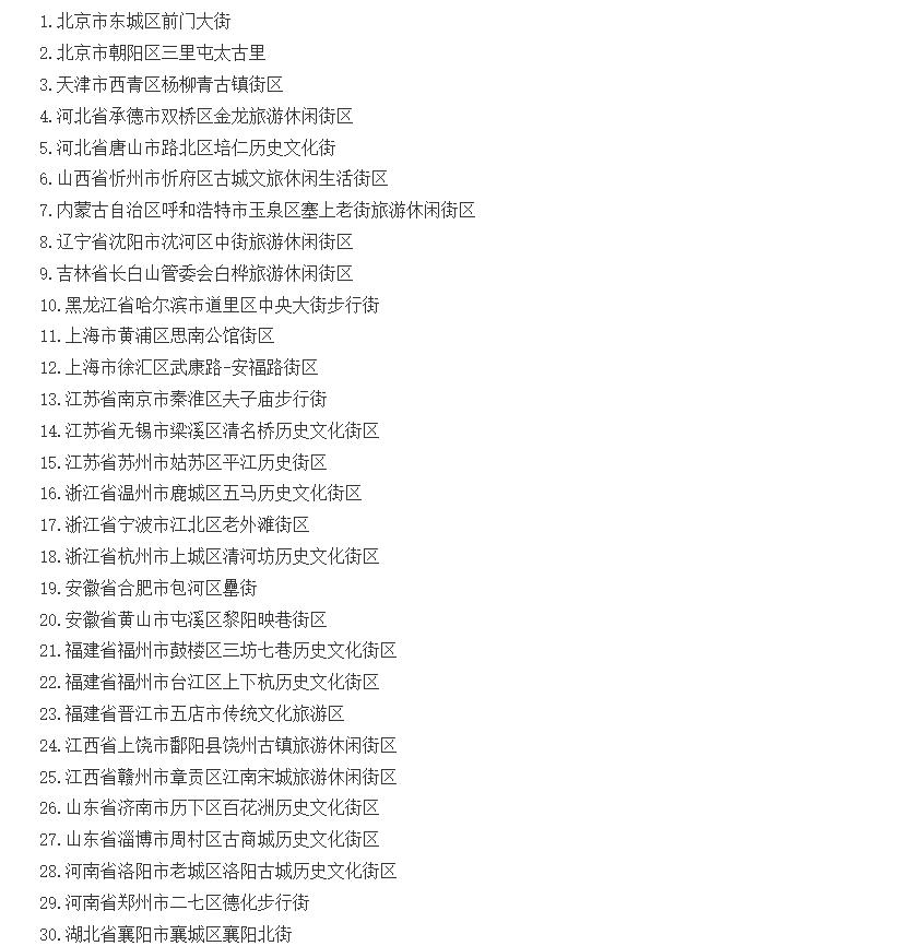 首批国家级旅游休闲街区名单(来源:文化和旅游部)