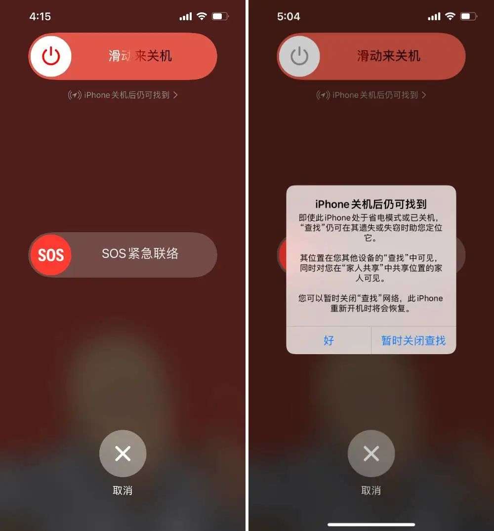 当然,如果你担心关机被跟踪或者泄露隐私,也可以选择关闭查找服务,在关机界面苹果给出的不仅是一个提示信息,这个信息本身也是可以交互的,点击就能快捷关闭查找。