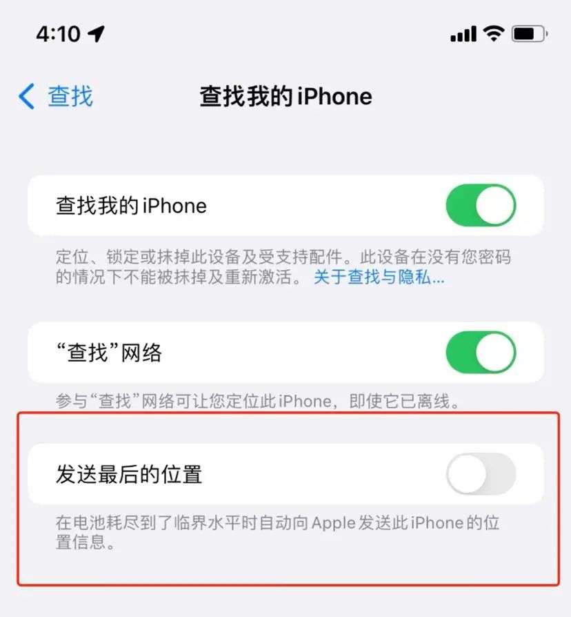 不支持关机定位的 iPhone,建议开启「发送最后位置」功能