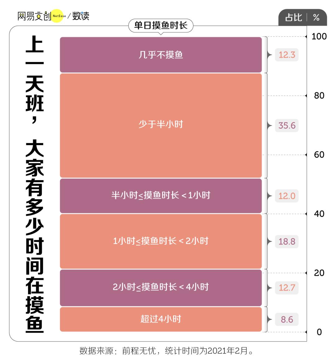 根据前程无忧的调查,仅有 12.3% 的受访者表示自己不摸鱼,近一半的人每天至少会划水半小时。