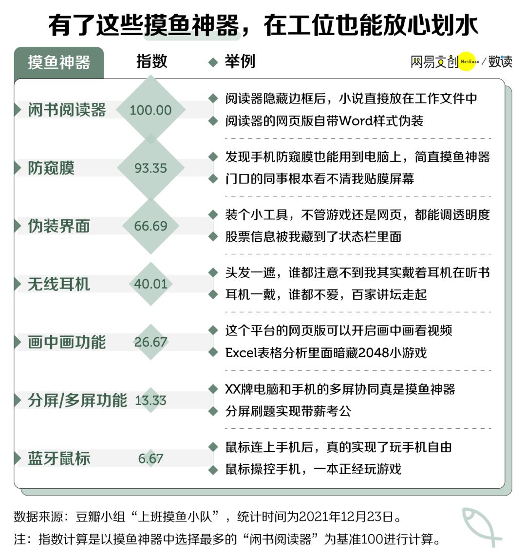 当然,伪装也需要一定的门槛,会演戏自不必说,还要有地理位置优越的工位。要是就坐在领导旁边,想安心摸鱼太难了。