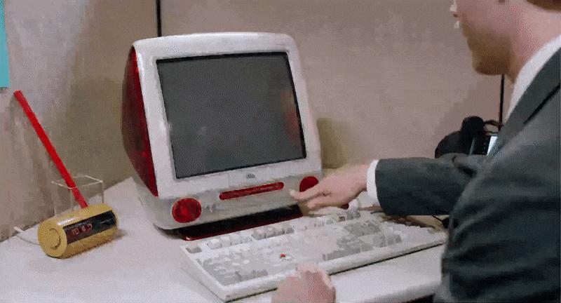 这些被选中的幸运之人带着氧气面具到达办公室,从早上 9 点到下午 5 点敲着打不开的苹果、戴尔等品牌电脑,度过富有「工作价值」的每一天。刚刚入职的男主角,分配到的工作隔间里摆的恰好是一台红色的iMac G3。