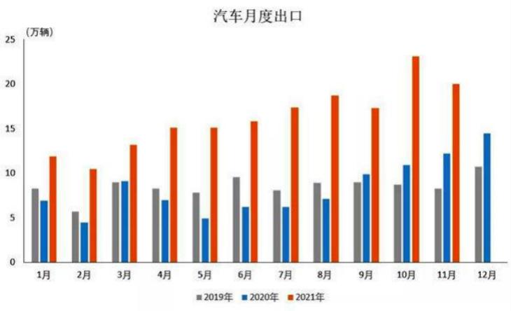 据中国汽车工业协会最新统计数据显示,2021年1-11月,汽车企业出口179.3万辆,同比增长1.1倍。