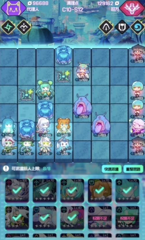 既然是竖屏游戏,不难猜到游戏大抵会是放置类,《跃迁旅人》的确是自走棋玩法的放置游戏,角色能自动战斗,玩家仅需点触释放角色技能即可。尽管玩法是成熟的,但面向二次元用户的放置类游戏还是比较稀少的,再结合游戏独特的风格化设计与题材,想必能找到一群适合它的用户群体。