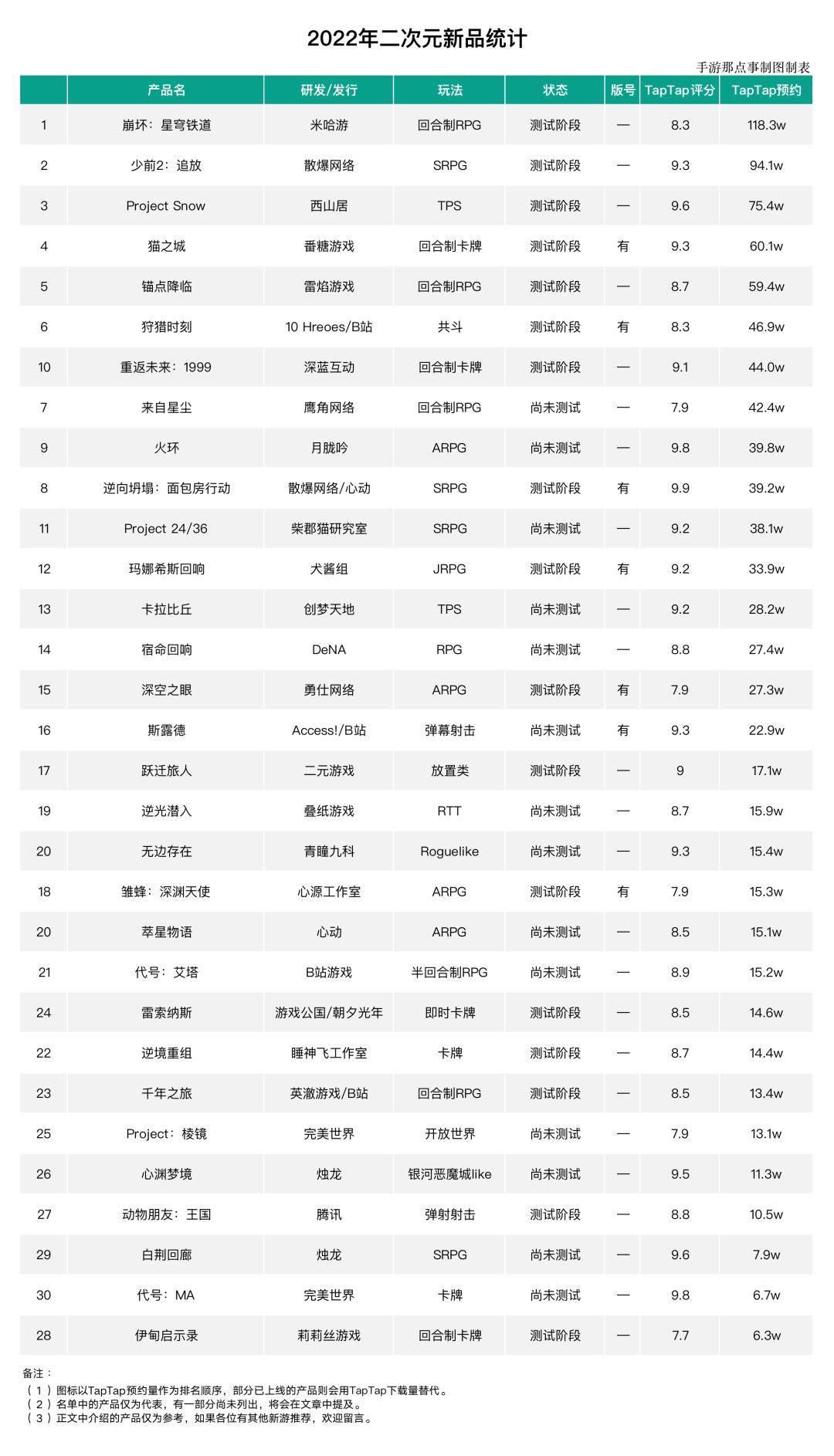 下面,笔者把到2022年1月为止亮相的有代表性的29款二次元产品整理成了一份名单,通过这些即将在未来一展拳脚的新品,我们可以来梳理2022年二次元品类未来的整体趋势。