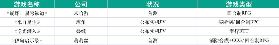 以「回合制RPG」为例,这类游戏能很好地向玩家展现游戏世界观、故事、角色方面的内容,而《崩坏:星穹铁道》《来自星尘》《伊甸启示录》都是强叙事性游戏,极为注重内容的表达,这也是上述三家厂商匹配这一玩法的原因。