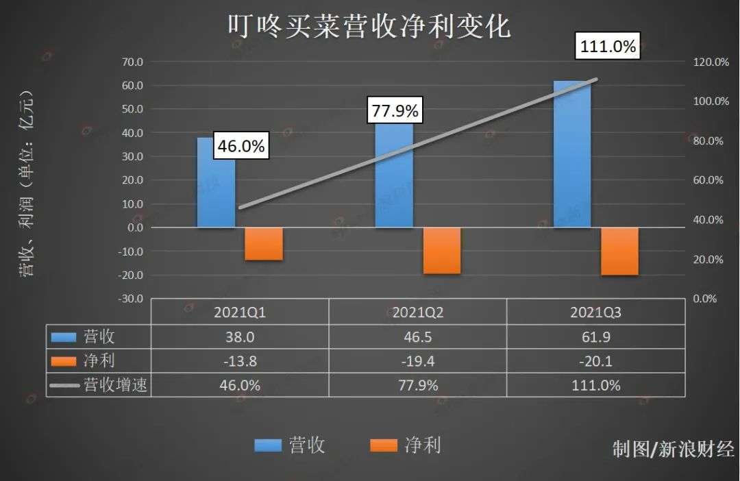 2021年11月,叮咚买菜交出了一份喜忧参半的三季度财报。