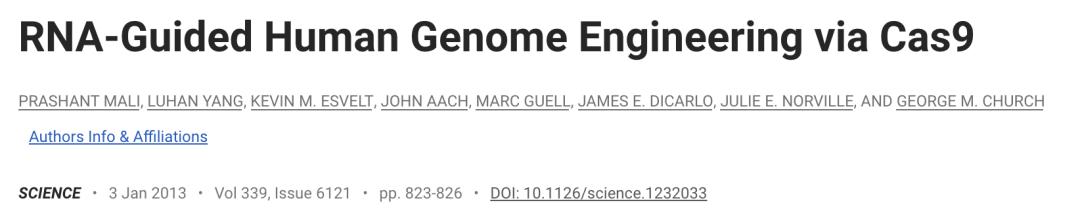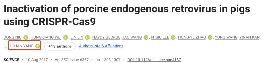 其实,早在2013年,杨璐菡就将CRISPR系统成功应用于人类细胞基因编辑,同样发表在国际期刊Science上。