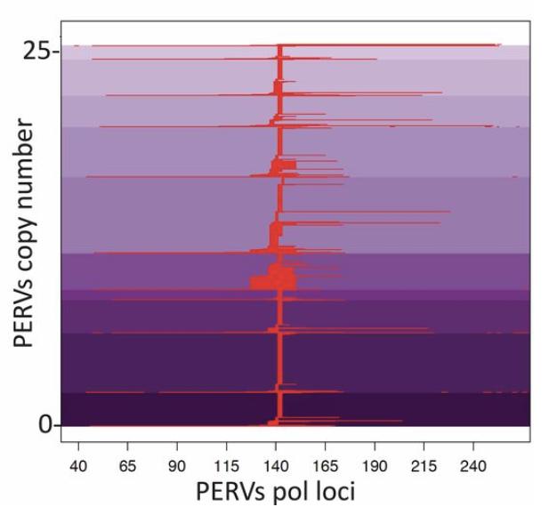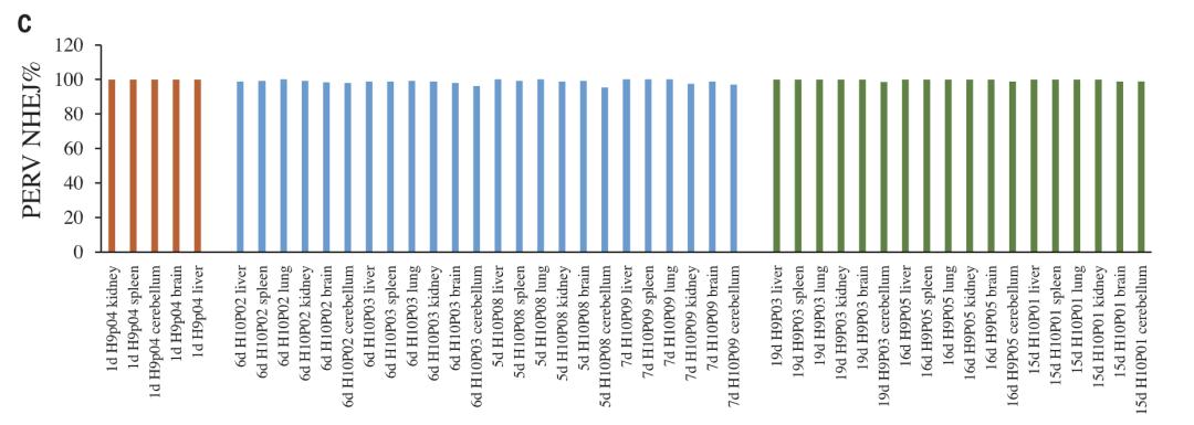 研究中,科学家们还检索了猪成纤维细胞基因组内存在的PERVs,共发现了25种。他们同样利用CRISPR技术将这25种PERV的基因位点灭活。