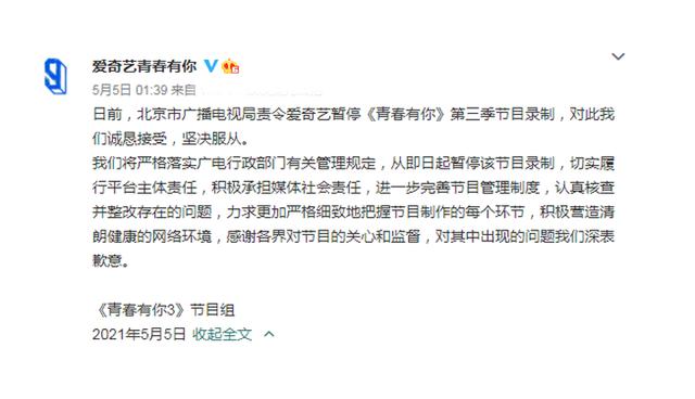 随疯狂而来的就是流量的反噬,倒牛奶引发全民热议,爱奇艺、蒙牛双双致歉,爱奇艺苦心经营的“青春有你”IP彻底被封。几个月后,国家广播电视总局办公厅印发《关于进一步加强文艺节目及其人员管理的通知》,明确规定广播电视机构和网络视听平台不得播出偶像养成类节目。