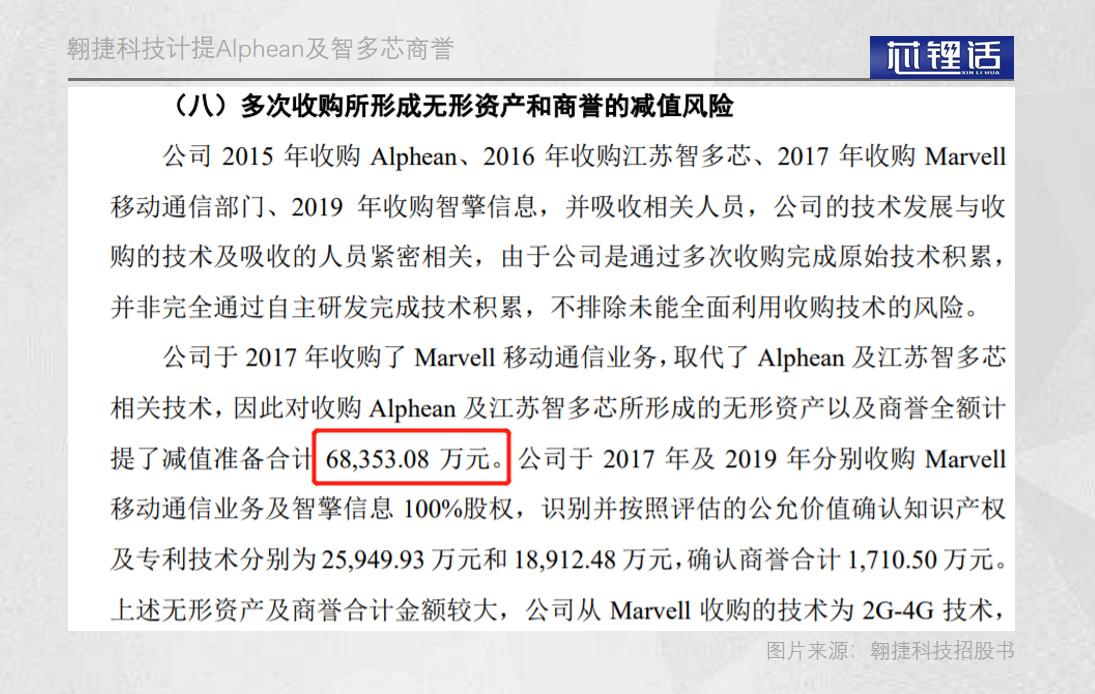 要知道,此前翱捷科技收购名不见经传的Alphean和智多芯时,都产生了6.84亿元的商誉,而收购Marvell移动通讯部却仅产生2900万元的商誉。