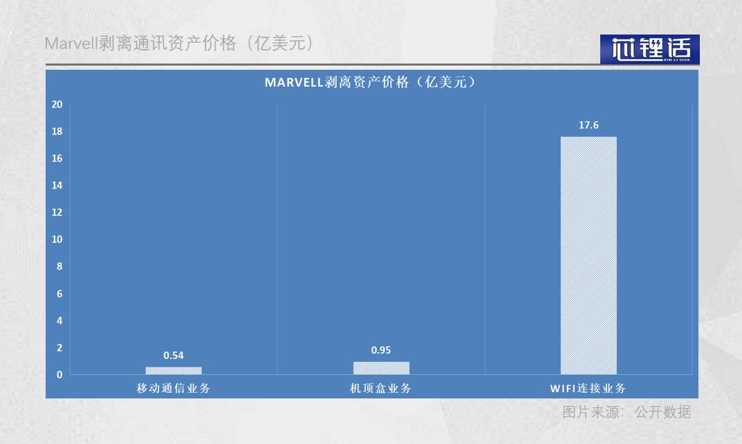 从交易金额分析,Marvell的核心资产基本集中于WIFI连接业务,而移动通讯业务和机顶盒业务几乎是“白菜价”甩卖。
