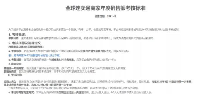 12月份,速卖通通过了一项商家年度销售额考核标准,把运营能力不行的,不“上心”的卖家清退出平台。