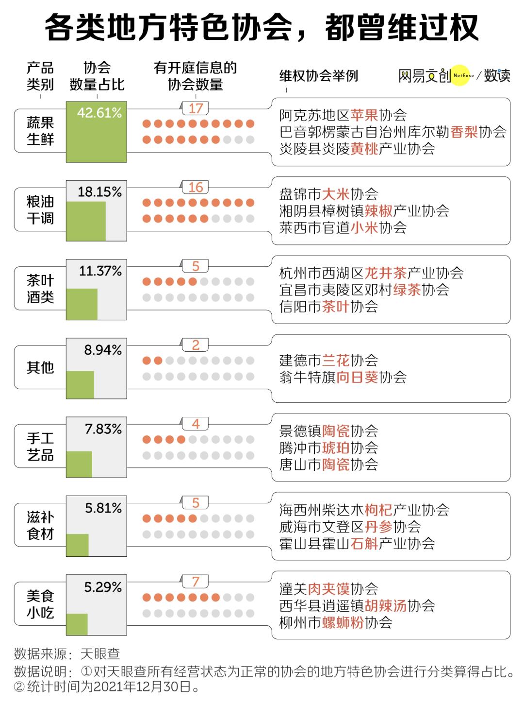 例如,阿克苏地区苹果协会、库尔勒香梨协会、五常市大米协会……它们都曾有过不少诉讼纠纷,开庭公告数量排名前列。