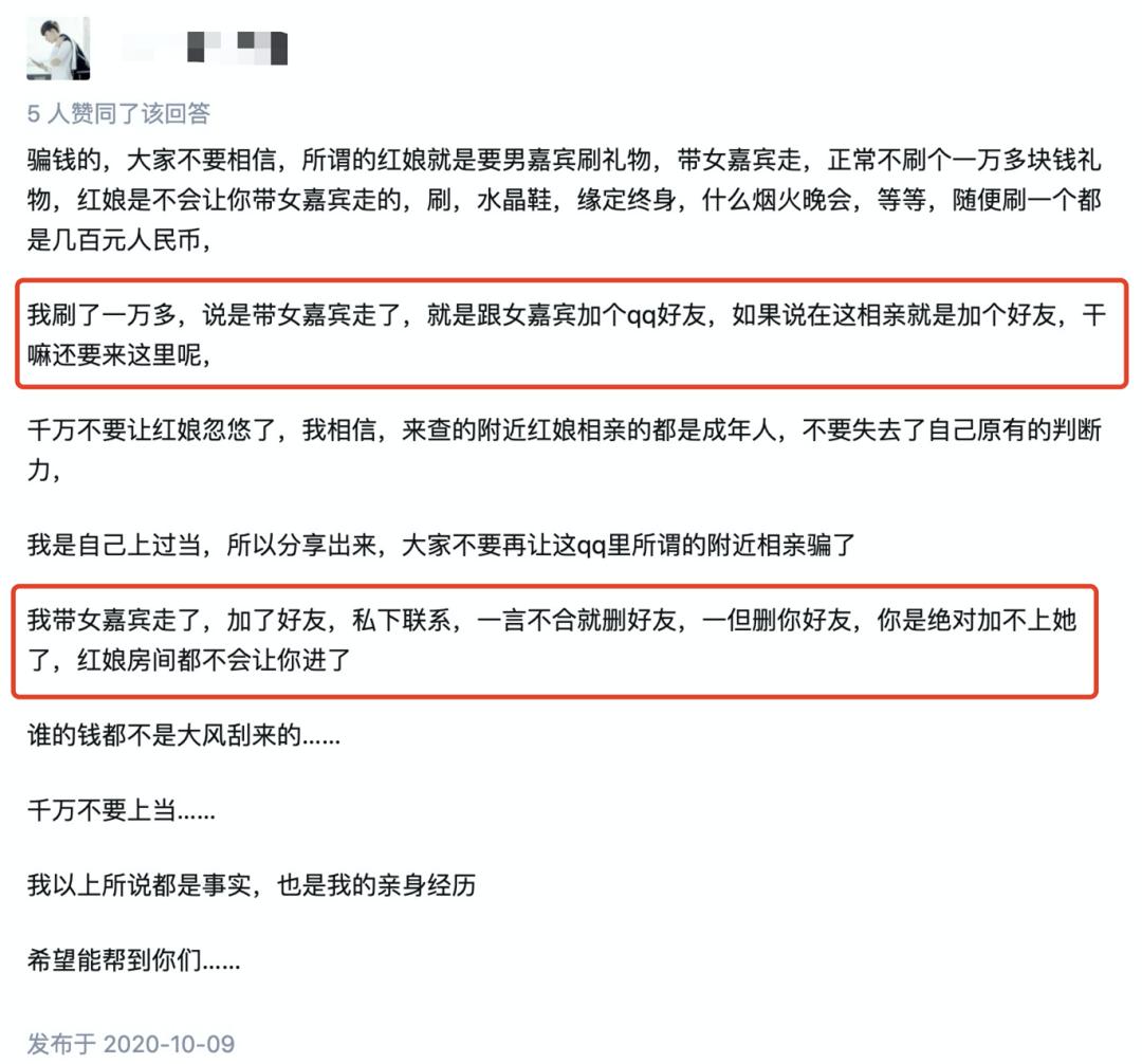 有知乎网友称,充值一万多终于成功牵手后,没聊两句女嘉宾就把他给删了,红娘的房间也对他关上了大门。
