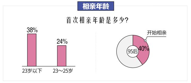 珍爱网发布的《单身人群调查报告》显示,38%的单身男女首次相亲年龄不足23岁,近半数95后已有了相亲经历。