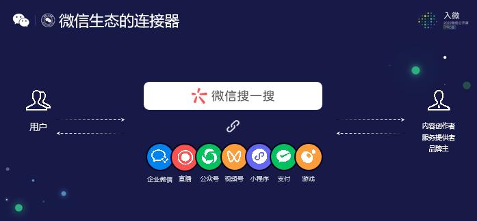 搜一搜团队属于微信里的低调团队。围绕“连接器”定位,他们在今年的公开课中又做了进一步解释,细化到了连接了微信的小程序、公众号、视频号、服务和品牌等维度。以上普通用户也能看懂的连接,所见即所得,很好理解。但连接之后,如何运营生态繁荣?打通全部产品逻辑之后,一个新的搜索产品,如何靠近用户心智?