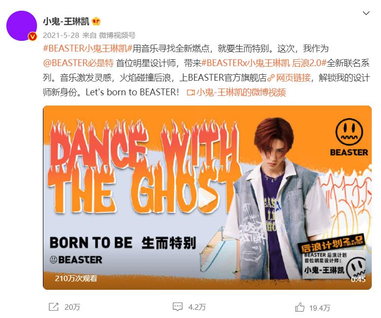 小鬼王琳凯与BEASTER联名款官宣微博