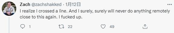 “我意识到我突破底线了。我绝对,绝对不会再做任何哪怕跟这有一丁点相似的事情了。我真的错了。”
