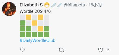 色块风格的 emoji,就好像密码暗语一样,再加上“#每日Wordle俱乐部”、“午夜Wordle俱乐部”等相关话题,吸引了更多之前没玩过、没听说过 Wordle 的用户,也想要加入这个神秘的俱乐部: