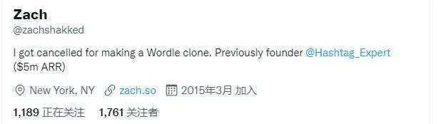 Shakked 修改了他的 Twitter 账户介绍:“我因为开发了一个 Wordle 克隆,被 cancel 了。”