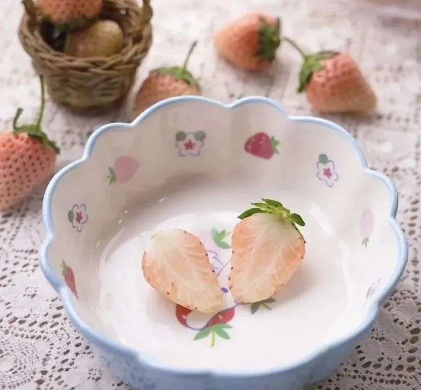 草莓本身被人们赋予了某种诗意与浪漫,白草莓又因为颜色梦幻,更加罗曼蒂克。