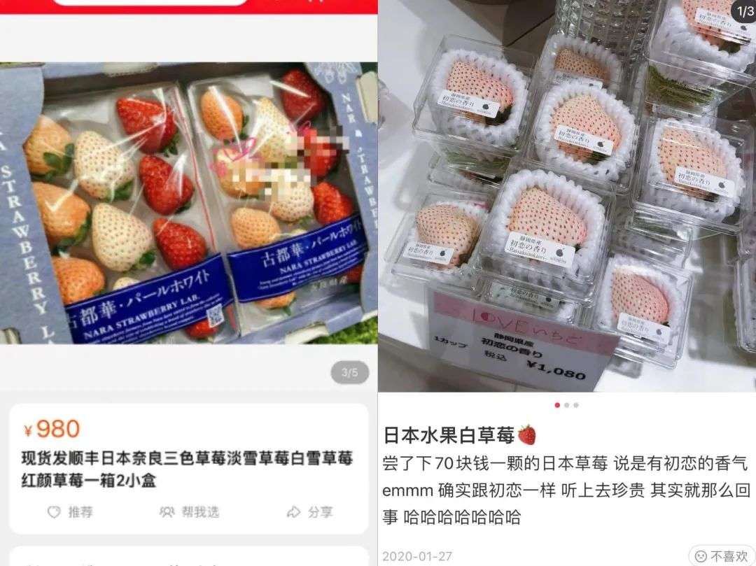 在某宝上,2小盒日本奈良三色草莓代购卖到980元。