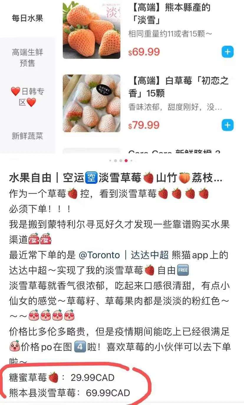 69.99加元买11~15颗淡雪,折合人民币就是平均每颗23~32元,一颗的价格可以买普通草莓一斤。