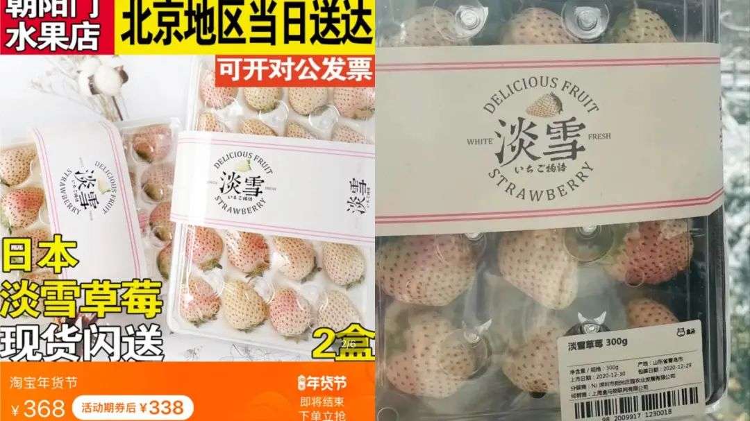 市面上,很多高端超市都有出售“淡雪”。这个日本品种,巅峰时期被炒到800-1000元/斤,平均每颗白草莓要40~50元;目前在日本电商零售渠道上,淡雪折合人民币大约为460元/斤,平均每颗23元左右。
