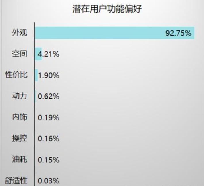 另一个数据可以进一步佐证这一点,根据汽车之家大数据显示,在坦克300潜在用户中,有92%的人是被其外观所吸引。而被其性价比所吸引的人,只占1.9%。这三个数据充分说明,坦克300“出圈”的首要因素,就是外观。