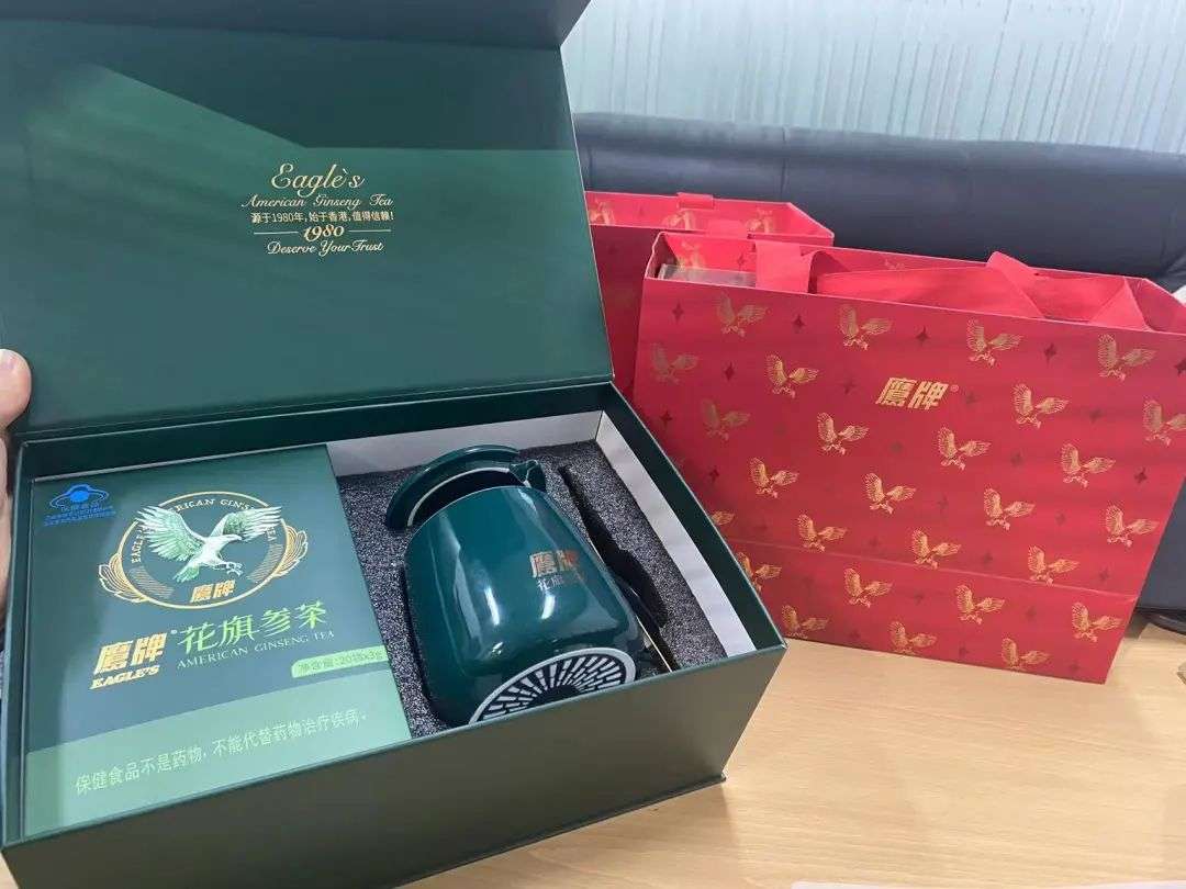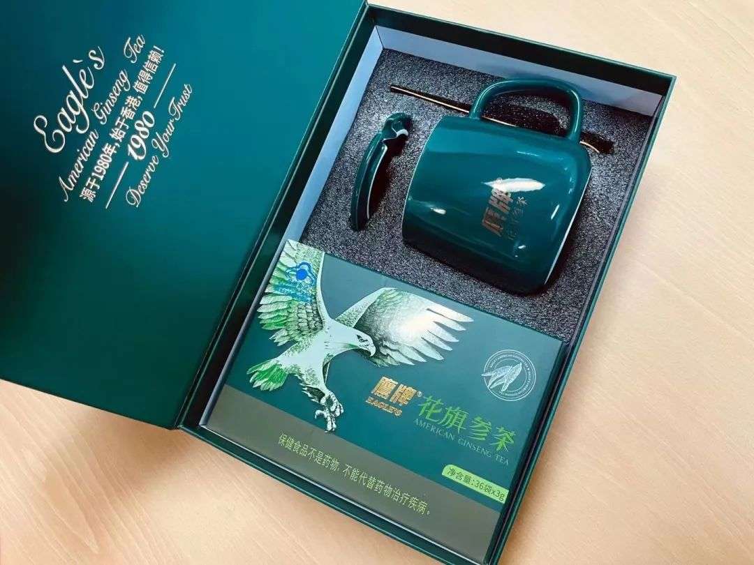 鹰牌的新春礼盒简约大方实用,鹰牌花旗参茶配一个同款颜色的杯子。送礼认准这只鹰,提神不刺激神经。大叔昨天一次喝了两包,活力满满。